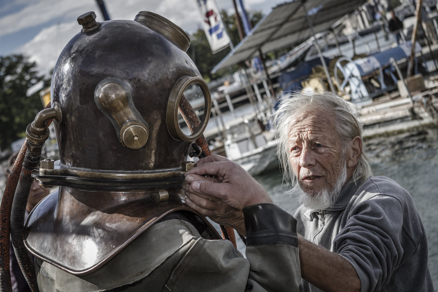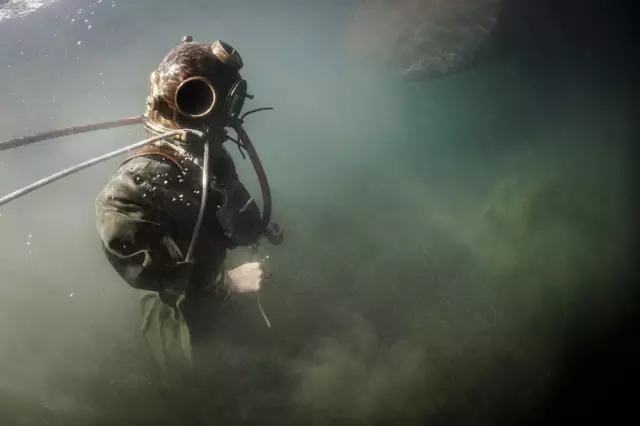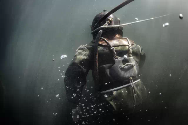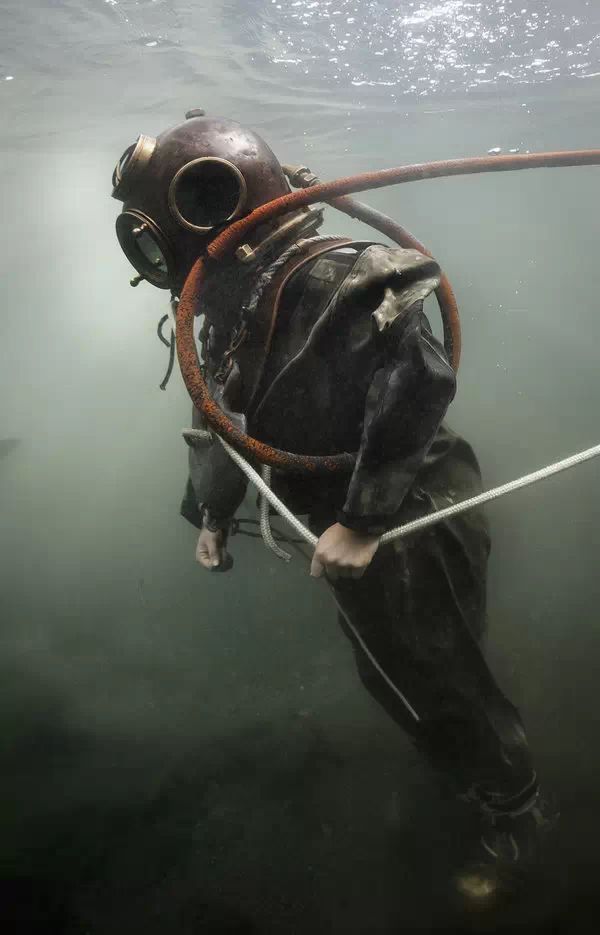 瑞士前工业潜水员,现有职业为摄影师的Marc Henauer所拍摄的图片为我们记录了这次挑战:现代潜水员穿着历史上的铜质潜水服在日内瓦湖底的一次短暂体验。