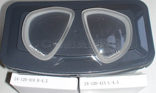 出售这种潜水面镜的潜水装备零售商店一般都备有多种屈光度数的镜片,因此顾客当天就能根据自己眼睛的度数配好潜水面镜。成品镜片一般是从150度到800度,间隔50度。