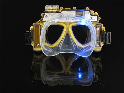 Video Swim Mask提供了可高达5尺的防水深度,具备500万画素的摄影镜头,可录制动态影片之外,也能同时进行静态捕捉,任何好画面都不会被错过。并且内建16MB的储存空间,支持拍摄27张高解析度照片以及录制52秒640X 480的VGA影片。如果你觉得16MB的存储空间有些小,OK!这都不是问题,Video Swim Mask还支援2GB microSD卡扩充,只要透过内建USB电缆就可传输至电脑。它使用两颗AAA电池。售价为99.99美金。
