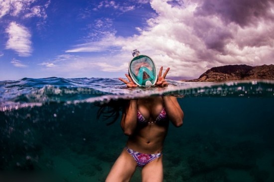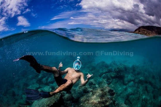 以前带有橡皮牙垫的潜水面具过于笨拙,如今该公司推出的这款全脸覆盖潜水面具,可适用于水下10英尺(约3米)的深度,使潜水变得更加舒适。
