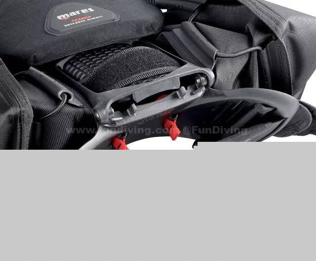 3、或许你会担心这样的背板是否耐磨,Mares的设计师们也为你提前解决,在背板与气瓶的贴合处,采用了独特的“Powergrip system”制作,让背板更加耐磨。