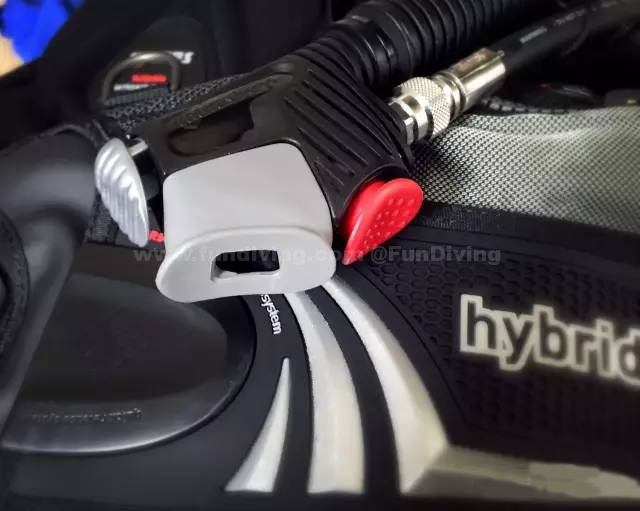 除此之外,Mares的充排气阀也采用了人体工程学的设计,让抓握更加舒适,充气或排气按钮也使用了鲜美的颜色区分,红色充气,灰色排气,对于水下的你,操作变得更加便捷。