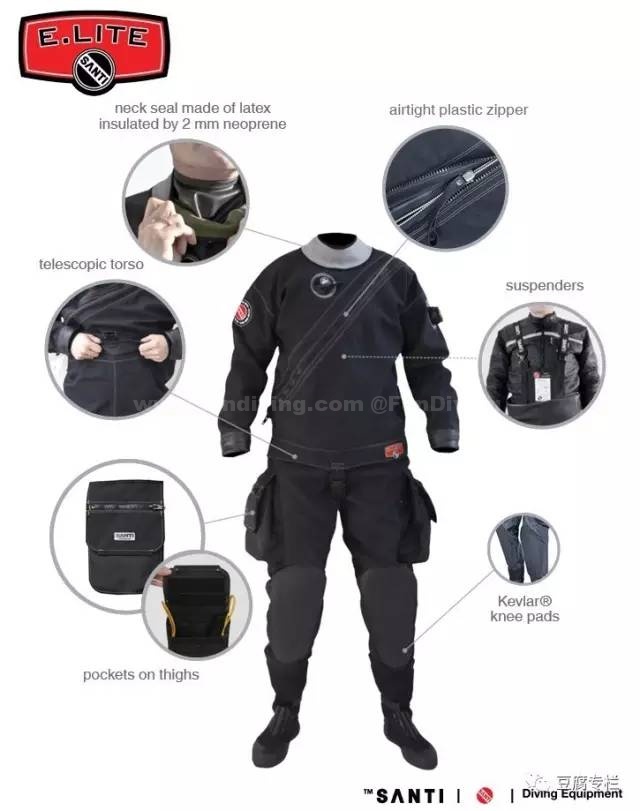 按照对“干衣”这个词汇的了解,基本可以判断朋友同事和我的熟悉程度。本公众号的读者想必都知道干衣(干式潜水衣)的基本原理——反正就是衣服里面不会进水呗!也分得清trilaminate(三层压合材料)和氯丁橡胶的材质。氯丁橡胶据说比较便宜,并且自带保温功能,但是会随着水压加大被压薄,保温性能逐渐降低,浮力也会变化;我某任毒舌buddy还曾经说,氯丁橡胶干衣穿上去掉半条命,剩下半条用来把它脱掉。