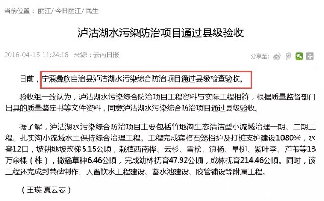 近日,泸沽湖水污染防治项目通过县级验收↓↓