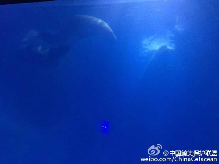 可以看到,圈养池非常狭小,水质也很浑浊。而且池内毫无丰容。这些具有发达心智、需要广阔大海来游弋、下潜、捕猎和玩耍的动物就被困在不到自然栖息地1/1000000的地方一天又一天。而且广州正佳极地海洋世界毫不掩饰的最大限度榨取这些动物的剩余价值,和白鲸合影,拥抱亲吻,对这些动物来说并没有选择。