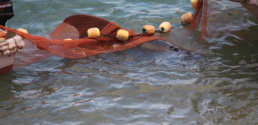 ▼屠杀后,又将领航鲸用防水布包覆隐藏起来。