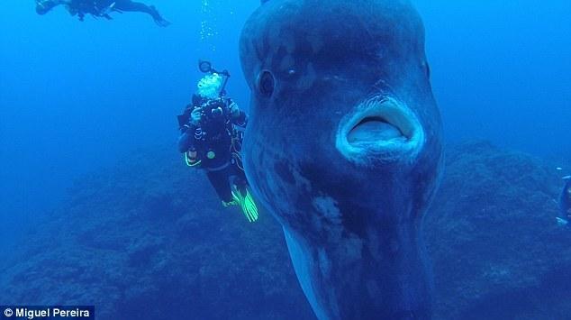 据《每日邮报》报道,葡萄牙海岸附近发现了高达5米的巨型翻车鱼,潜水员只有它的鱼鳍那么大。