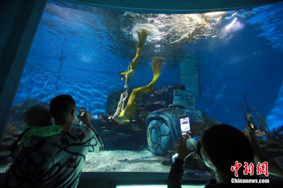 在武汉海昌极地海洋公园里有这样一对母女“美人鱼”。母亲叫张端芬今年32岁,在经历过一段不幸的婚姻后,今年年初她自荐来到武汉海昌极地海洋公园扮演“美人鱼”。由于单亲,8岁的女儿比较早熟,张端芬教会了她游泳与潜水,并为她也做了一套美人鱼服装。