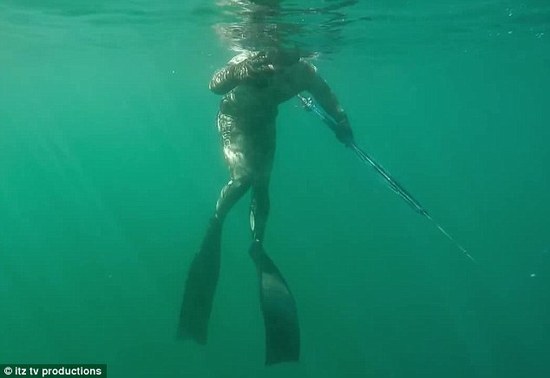 一位名叫Potgieter的小伙在南非一海域潜水扑鱼。