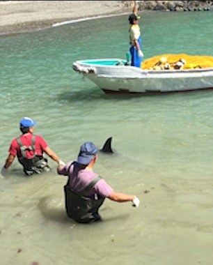 北京时间9月16日消息,据英国《每日邮报》报道,海豚保护者瑞克·欧贝瑞(Ric O'Barry)近日在日本太地町拍摄下一段令人心碎的视频。一只为了躲避捕杀的海豚冲到了海岸岩石上,在即将搁浅的时候被赶来的渔民又拖回了海里。