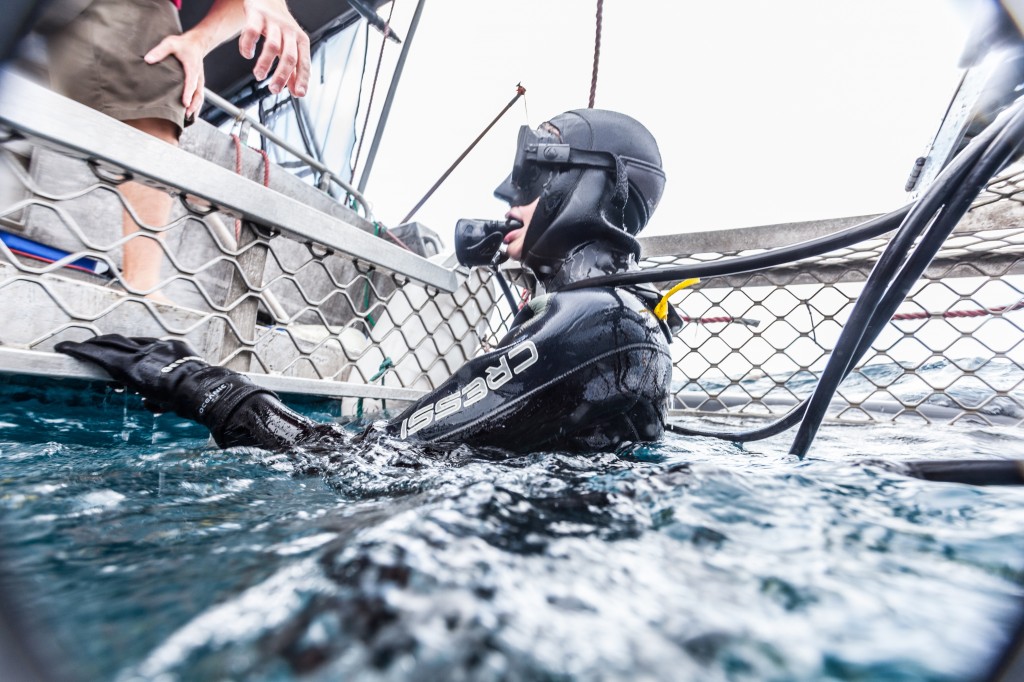 现在,如果你去南澳大利亚的Lincoln港,就可以坐进一种最新的Aqua Sub(玻璃潜水箱)里欣赏大白鲨。这种潜水箱可以容纳最多6~8个人,整个箱子的形状就像一艘小船,通体是透明的,客人先坐进漂浮在水面上的潜水箱中,待人坐齐后关上舱门,再慢慢地深入海中,在这个过程中,可以一边品尝美食、饮料,一边欣赏海底美景,还能邂逅经常出没在这里的大白鲨呢!