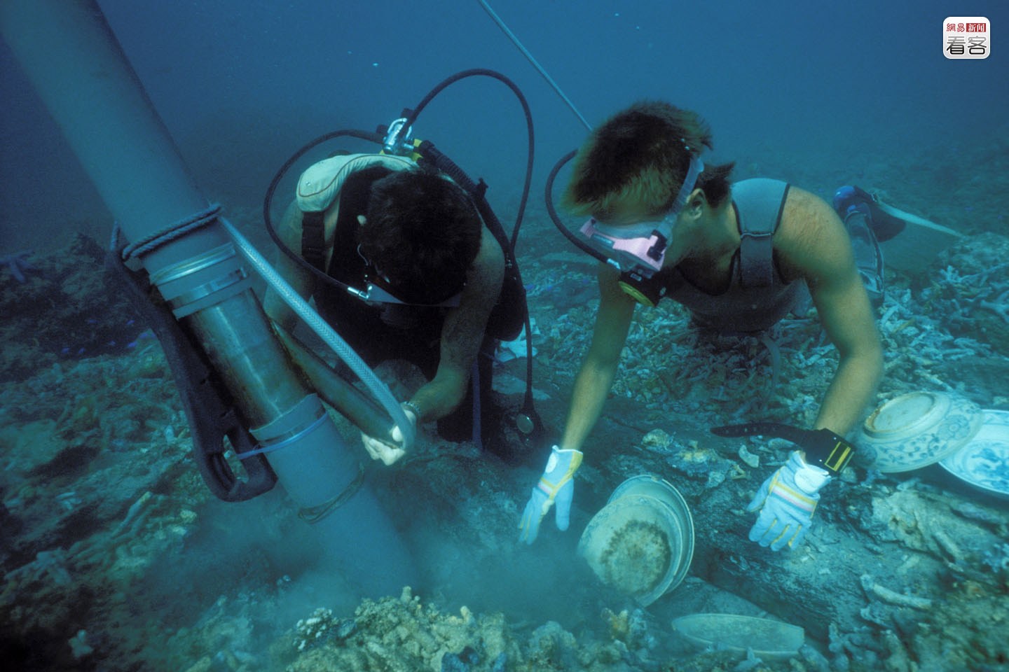 尽管珊瑚对于自然环境的保护非常重要,但是出于经济开发和奢侈品的需要,中国沿海地区的珊瑚基本上都已被毁坏。图为1990年6月,中国南海,潜水员用水炮冲开珊瑚礁寻找文物。