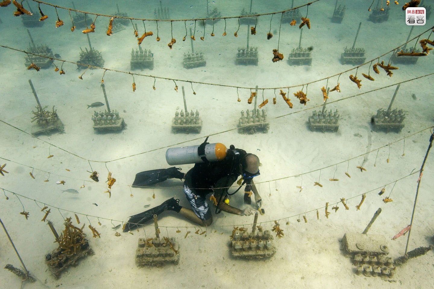 与其他国家的政府组织行为相比,中国还停留在民间自发保护的层次上。2013年10月27日,深圳,一群潜水员义工,在深圳大鹏海底筑建“珊瑚花园”。潜水员将珊瑚放入早已在大海中搭建好的铁架上。