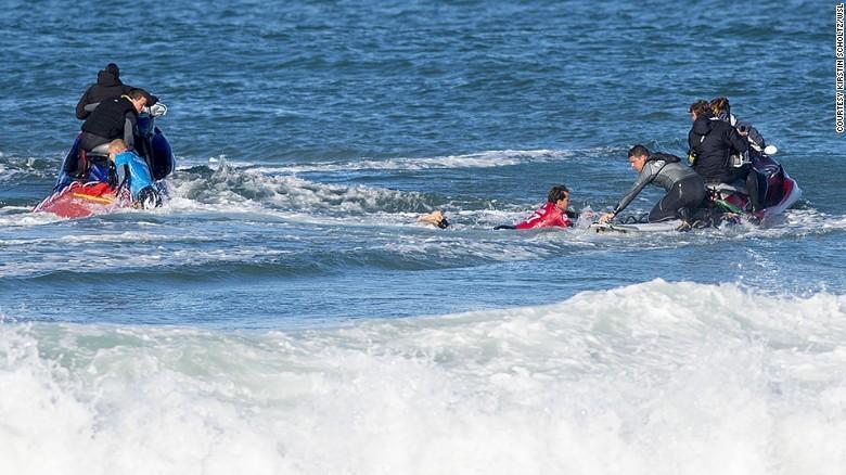 图为范宁在逃跑过程中丢掉冲浪板,迅速游离鲨鱼所在区域。