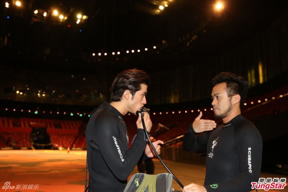李治延穿上潜水衣与专业潜水员下水,零距离探索全球最壮观水上汇演《水舞间》的秘密。对首次潜入全球最大型水上汇演之剧院水底看骚,李治延坦言感 到雀跃万分,并举起母指赞好。
