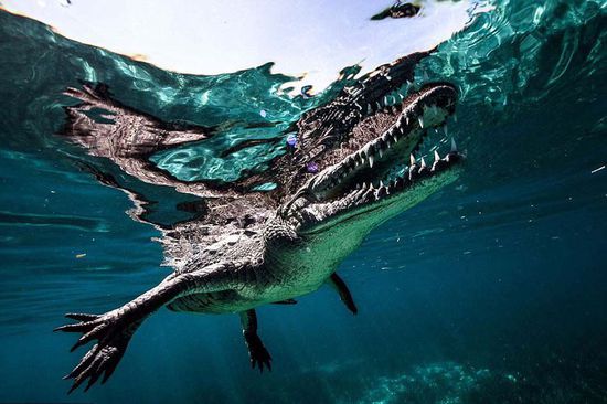 除了手中的照相机和多年积累的经验,39岁的卡斯蒂洛潜水拍摄时没有任何防护设备。这条咸水鳄体长超过3.6米。卡斯蒂洛说:“我原本是去那里拍摄鲨鱼照片,却意外出现了鳄鱼。”