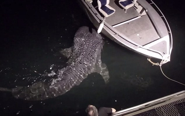 据悉,该鲨鱼属于鲸鲨,最长可达20米,在当地十分少见。