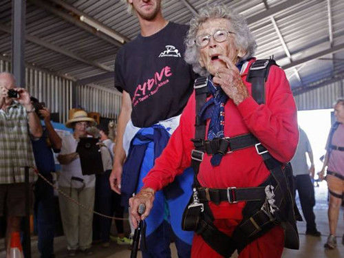 报道指出,为了让老人能度过一个兴奋而又难忘的百岁生日,家人还决定,如果老人在跳伞后还觉得不尽兴,他们将在当地时间16日带她去潜水喂食鲨鱼。