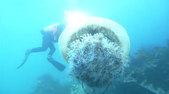 这种“野村水母”可以长到直径6英尺6英寸长(约2米),常见于中国和日本的深海中。