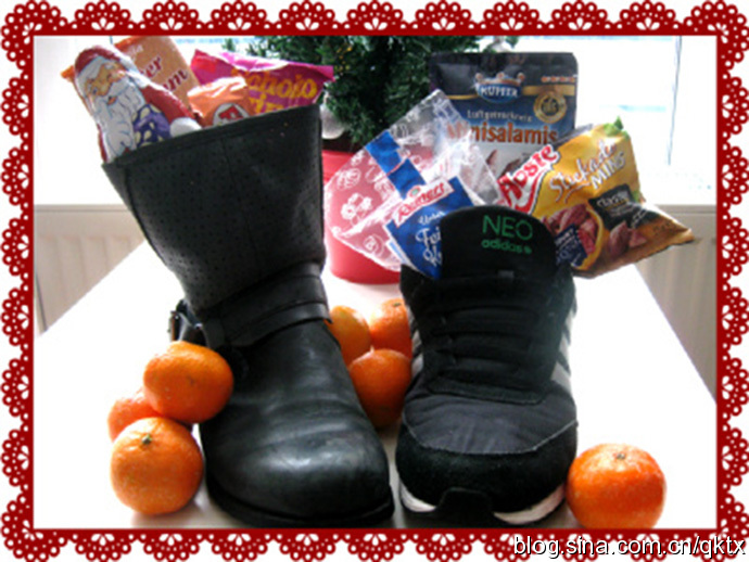 荷兰的圣诞节:荷兰人的圣诞老人名叫SinterKlaas,他还有个伙伴叫黑比特,这两个家伙会坐着蒸汽轮船给今年表现乖的孩子送去糖果和各种坚果。孩子们则要在鞋子里塞满稻草和糖喂给马吃。