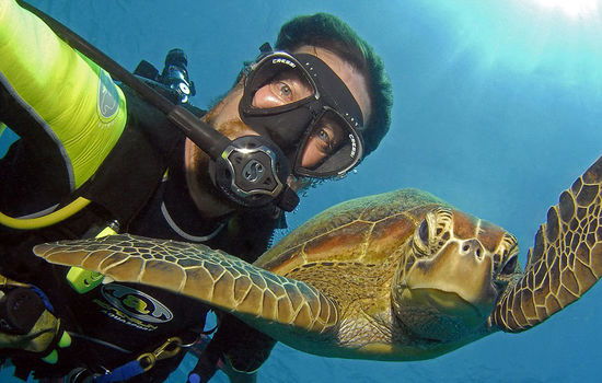 海龟是布伦南偏爱的自拍伙伴,因为他们非常冷静自如,让他可以尽兴的拍照。