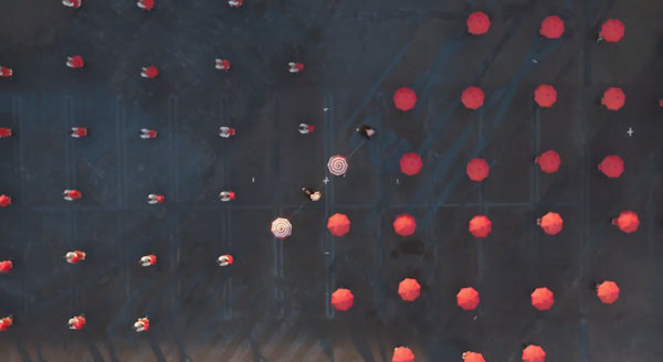 这段来自美国OK Go 摇滚乐队新歌 《I Won't Let You Down》的MV,由日本人原野守弘执导,一架无人航拍机,2400位日本女孩配合拍摄了近60次才完成。