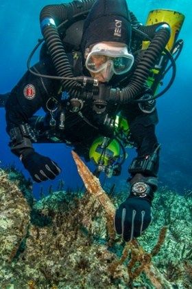 考古学家在安提凯希拉的古沉船遗迹现场进行发掘。