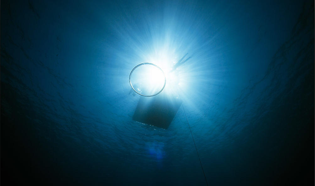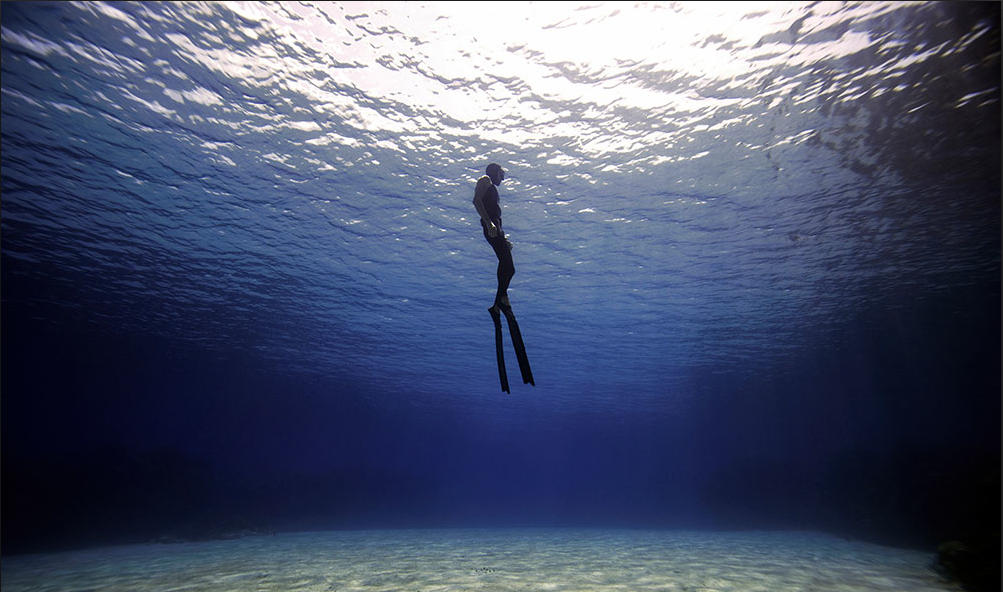 在清澈的海水中抬头仰望,阳光格外刺眼。因为存在极大的危险性,自由潜水的潜点都选择在透明度高的开放水域大海。