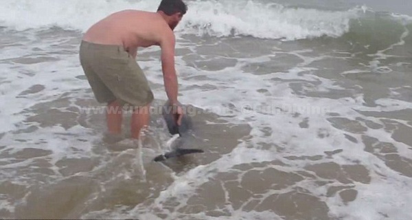 【环球网综合报道】据英国《每日邮报》6月10日报道,纳米比亚一位名叫诺德·德雷尔(NaudeDreyer)的皮划艇教练,与妻子在海滩边发现了一只搁浅的海豚,将它放回大海,从而拯救了海豚的生命。