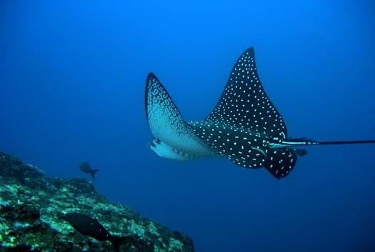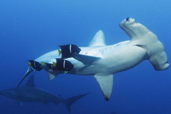 加拉帕戈斯群岛船宿,是每个潜水员都向往的朝圣地,这里每天都有盛大的狂欢游行,每天都在上演的锤头鲨风暴是重头戏,巨大游行队伍中,当然不能少了像加拉帕戈斯鲨、海狮、鹰鳐、海龟、海豚、鲸鲨这样的大家伙。