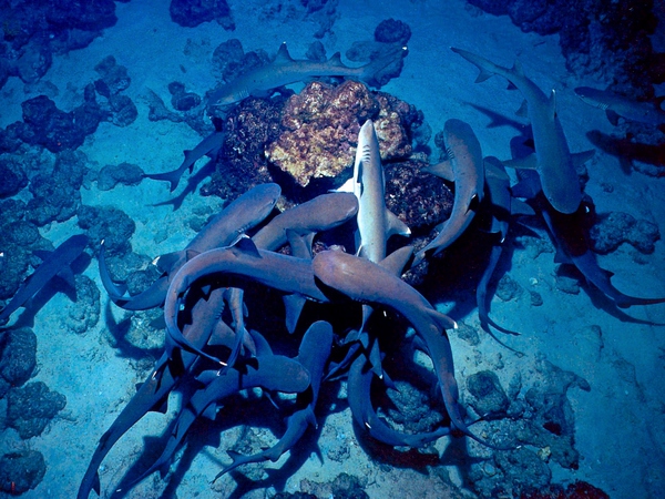 BlueCorner 蓝角,水流湍急多变,是赏鲨的好地方,白鳍鲨、黑鳍鲨游弋其中。