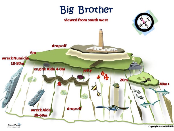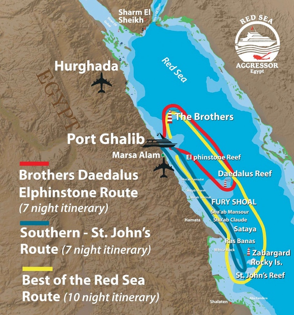 The Brothers 大小兄弟岛和El phinstone Reef 是红海船宿路线的精华所在。