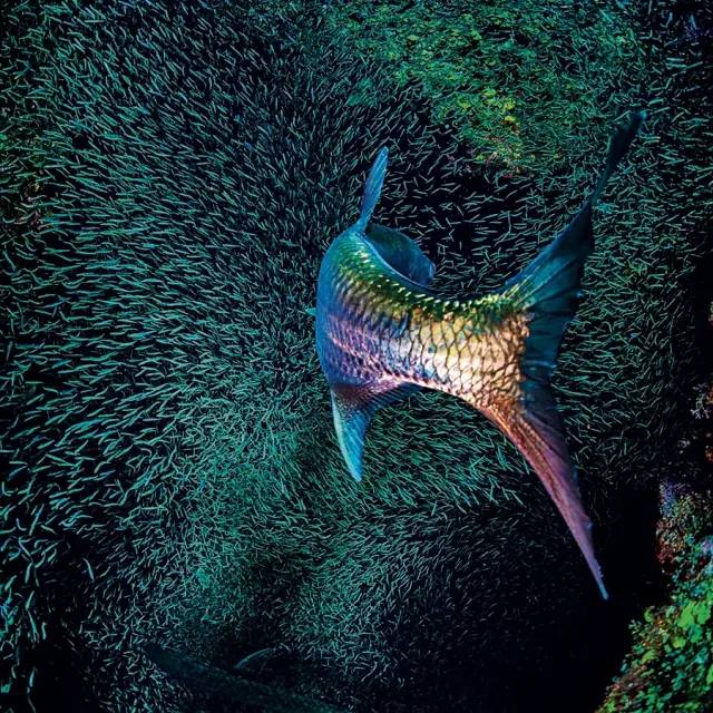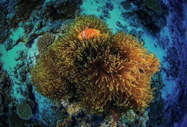 哈阿里夫环礁位于马尔代夫的北端。海面之下潜藏着震慑人心的色彩。跟随一条鱼,潜入它的世界 F7.1,1/200秒,ISO200 (Predrag Vuckovic摄)