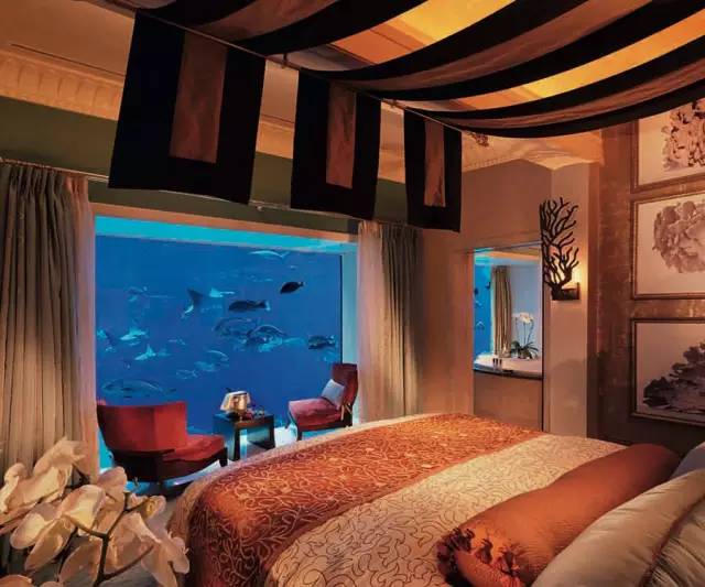 迪拜亚特兰蒂斯是中东最大的海洋主题度假酒店,两间特别的水下套房位于水族馆海底