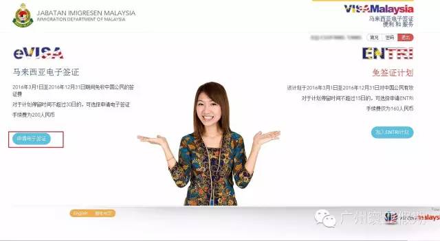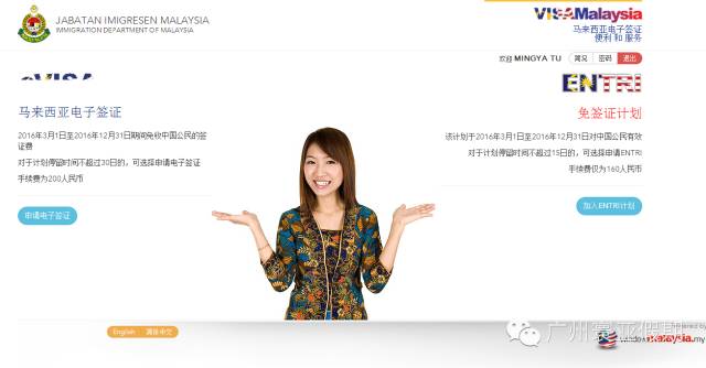 登入成功后可以根据需求选择马来西亚电子签证(EVISA)或免签证计划(ENTRI)