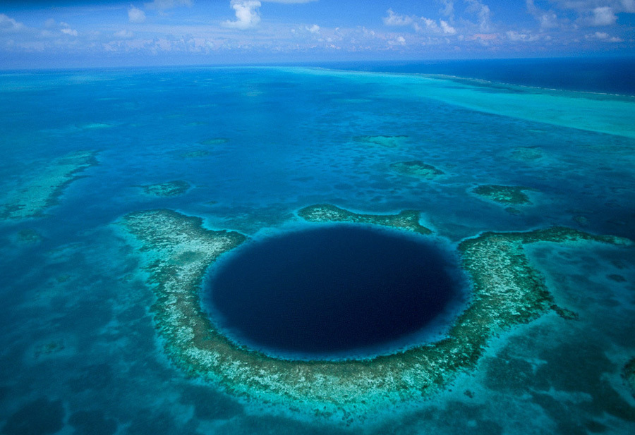 伯利兹堡礁诗仅次于澳大利亚大堡礁的世界第二大堡礁。加勒比海的许多地方都有蓝洞,而最大的蓝洞则位于灯塔礁几乎正中心的位置。