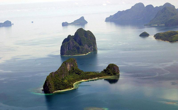 △“七十岛”(SeventyIslands)是帕劳泻湖中的石灰岩岛屿构成的,在泻湖周围的礁石之外,被淹没的“蓝角”海岬向公海延伸着。