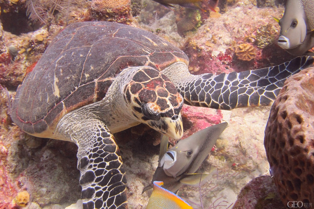 海龟和厚唇石鲈Sweetlip,水清到完全不觉得是在水里。