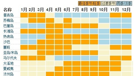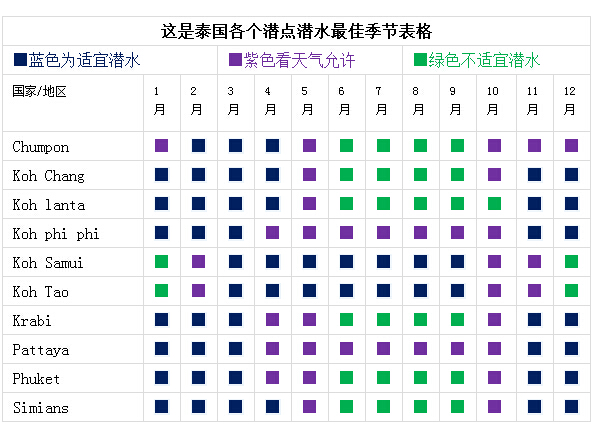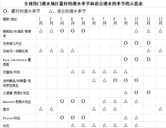下图是东南亚地区按照季节推荐的主题潜水活动。比如你想看mola mola翻车鱼,表中显示7-10月是巴厘岛看翻车鱼的季节。