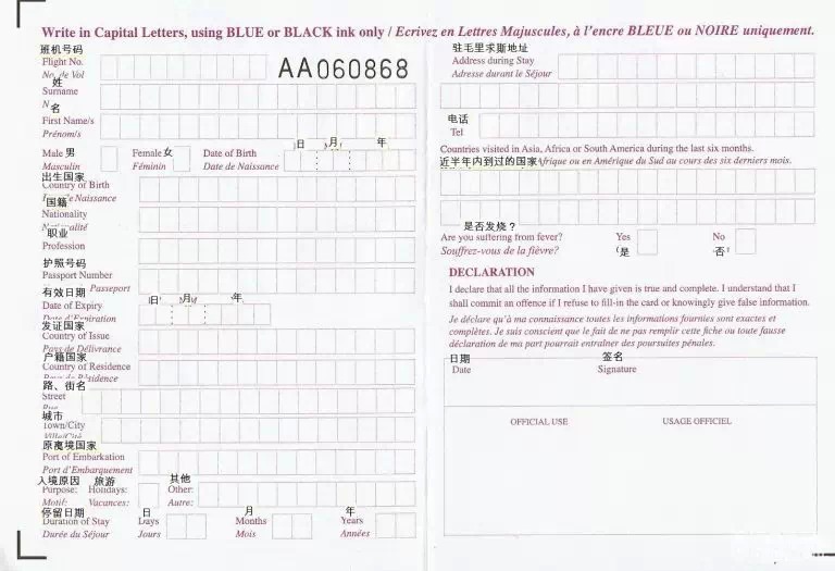 在开往异国他乡的飞机上,空姐递给你一张入境卡,如果你不了解当地语言,周边又无人可问,那么你最好把下面的内容收藏起来,有备无患。觉得有用,记得分享哟!