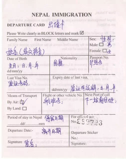 出境卡: