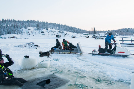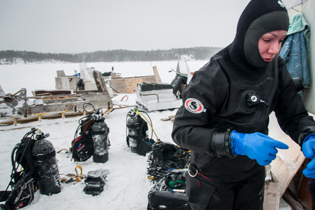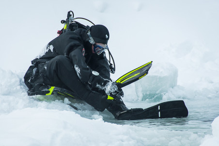跟你想的不一样,在白海潜水可不是去了就能开搞。一切都得重新学习,才能取得冰下潜水证,甚至保持潜水服干燥,以及系统的泵气方式这种都得学,这都是为了不潜着潜着就头朝下脚朝上的冲出了水面…