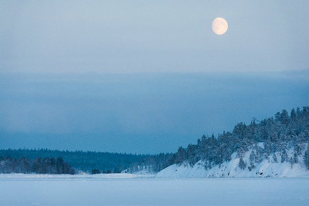列车穿行在滴水成冰的卡累利阿(译者注:卡累利阿共和国,位于俄罗斯西北部。),坐在闷热的车厢里,看着时而被云朵遮掩时而出现的一轮明月,一定幸福到爆了,再沿着森林走一个半小时,就到目的地啦!