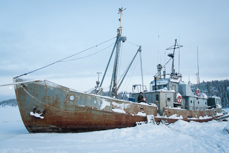 海湾靠岸的地方,到处都是被冰封的渔船