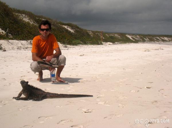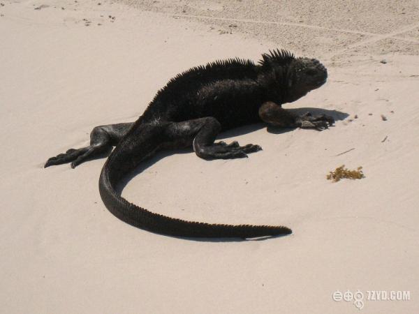 在船上的时候我就以现沙滩上,有一行动物的脚印。让我兴奋不已,我的老朋友,我的大蜥蜴.....我来了。岛上的蜥蜴有两种,海蜥蜴个大,是两栖动物,金蜥蜴个小灵巧,生活在树林里。登上Santa Cruz岛,看到的第一种动物是海蜥蜴。一群黑漆漆的海蜥蜴,趴在地上,有人靠近,也懒得去躲的样子,不断打着喷嚏。