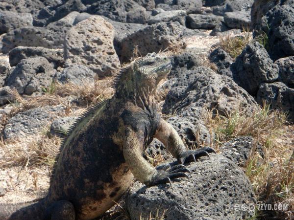 Galapagos群岛是世界上唯一拥有海蜥蜴和陆蜥蜴交配而产下的杂交蜥蜴的地方。这种杂交蜥蜴的生存能力较差,因为海陆蜥蜴不可以跟海蜥蜴或者是陆蜥蜴交配,只能跟同种类的海陆蜥蜴交配,所以数量比较少。我发现了红树林下大量的蜥蜴。总觉着蜥蜴的样子有些可怕,比虎、狮、豹等类似的动物更可怕。因为那些兽类凶猛让人明明白白,可蜥蜴象蛇一样的冷体动物很多时候都是一动不动,而且眼光无神,给人阴森森的感觉。