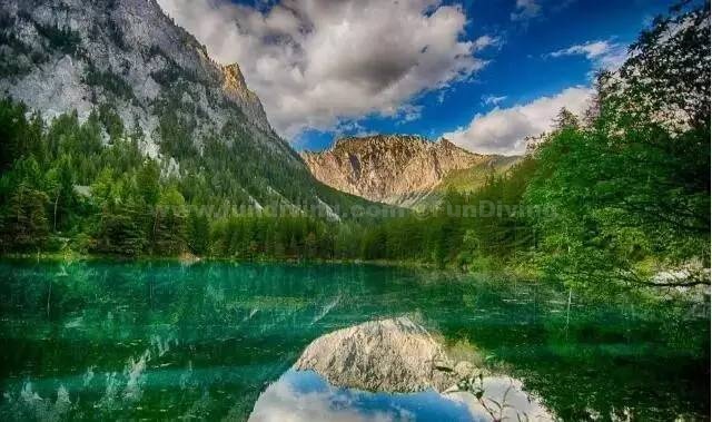 奥地利施蒂利亚的绿湖是一个高山湖泊,它是奥地利最独一无二的潜水之地。绿湖位于山顶被白雪覆盖的霍赫史瓦山脉脚下。随着春天降临,这座公园被冰冷纯净的雪水淹没,由于水下有大量绿草和树木,该湖呈现与众不同的绿色。