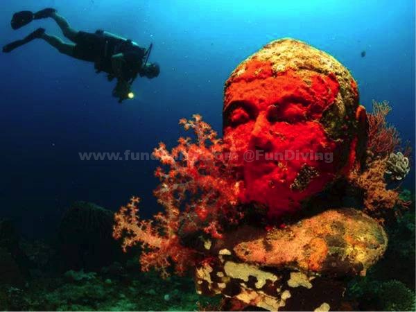 可是当你呆久了,也许会慢慢安静下来,忘了自己在潜水,好像真的是去礼佛朝圣一样。而大自然也用自己的力量,赋予了这些佛像新的生命。