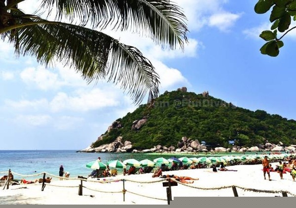 南园岛位于泰国海湾,包括三个小岛,由一片洁白的人字形沙滩连接而成,当海水落潮时,三座小岛便连成一体,走在狭长的沙滩上,左边是海,右边也是海。